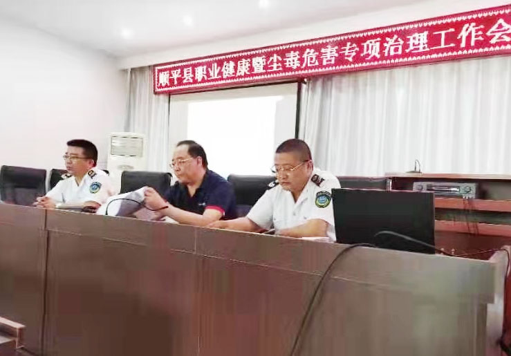 2019年7月10日我公司洪福磊和李雪峰到顺平组织开展了顺平县职业健康暨尘毒危害专项治理工作会议。